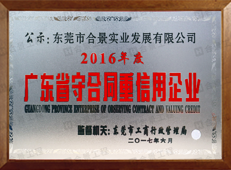近日,我公司被東莞市工商行政管理局授予 “廣東省重合同守信用企業(yè)”榮譽(yù)稱號,成為全省同行業(yè)中獲此殊榮的佼佼者。